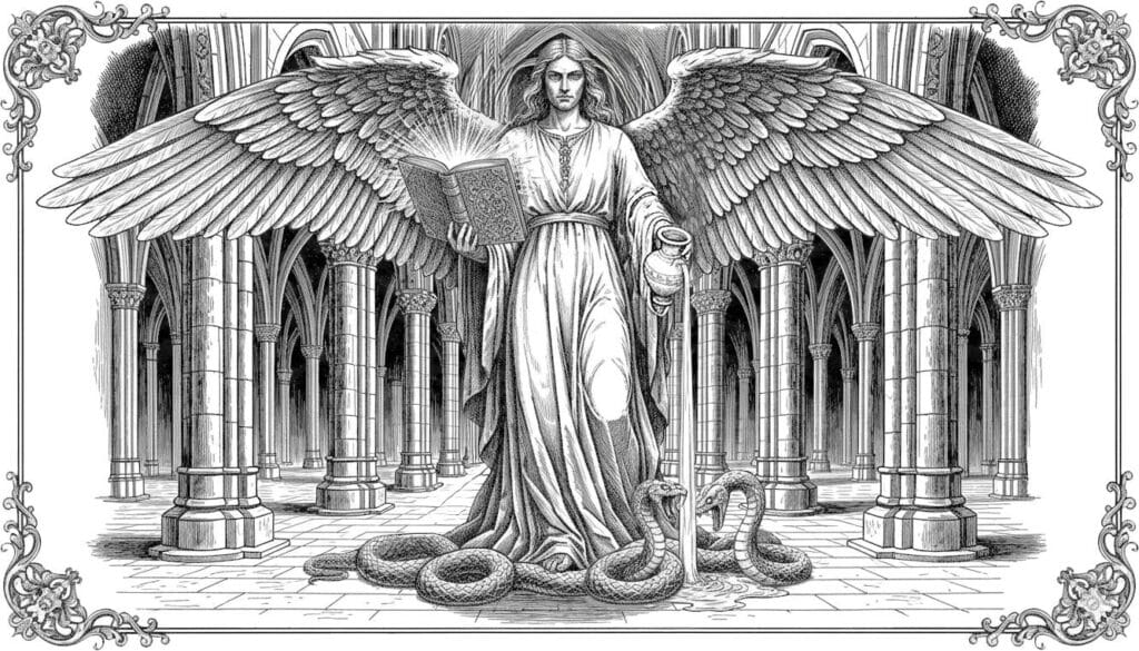 A warmth enveloped them as soon as they crossed the threshold, along with the temple’s dense atmosphere. The low light from the oil lamps, the suffocating smell of incense, and the deep, empty silence. Only their footsteps echoed on the stone slabs.